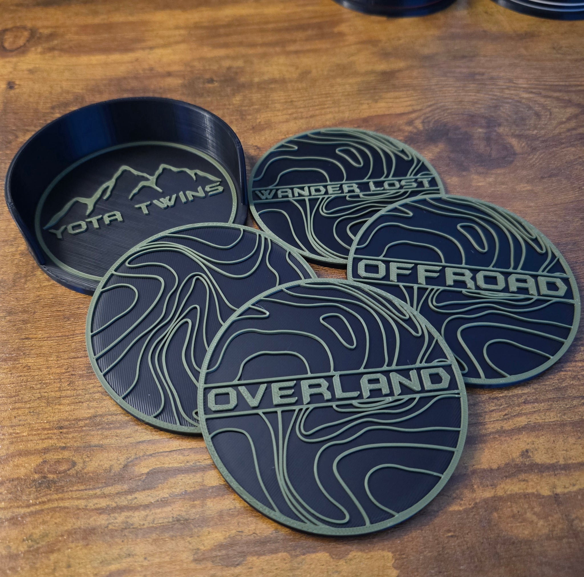 Do you love the outdoors and "off grid" adventures? Get yourself a set of these inspirational coasters! Perfect for any beverage, drinkware, bottle or can. Measures roughly 3.75" in diameter. 3D printed using PLA & PLA tough+ filament.